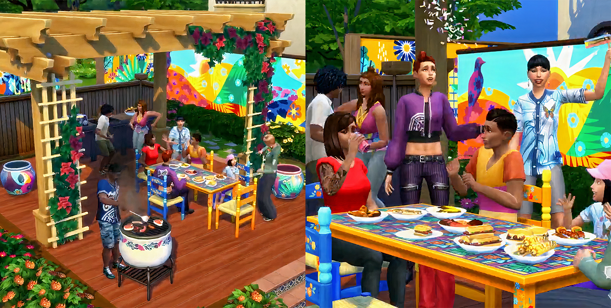 In-game food, CAS, & build items that are inspired by Latin America! A free update is coming to TS4 basegame tomorrow! #HispanicHeritageMonth