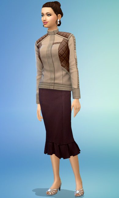 Uma galáxia distante e a riqueza aristocrática têm muita força juntas nesse estilo, que combina a jaqueta de couro estruturada e os coques elaborados do Pacote de Jogo ‘Star Wars: Jornada para Batuu’, com a elegante saia longa, brincos e sapatos brilhantes da Coleção de Objetos ‘Glamour Vintage’.