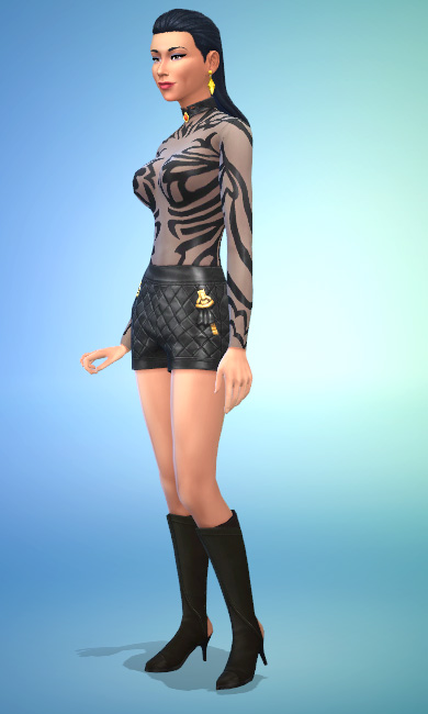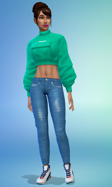 As expansões ‘Ilhas Tropicais’ e ‘Diversão na Neve’ não parecem de cara ter muito em comum, mas olha como a camisa e os shorts do pacote tropical se harmonizam perfeitamente com as sandálias e o penteado ondulado do pacote invernal.