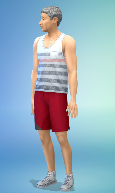 Descanso e exercício se confundem aqui. A bermuda e o tênis são da coleção de objetos ‘Fitness’, mas a regata e o penteado são do pacote de jogo ‘Retiro ao Ar Livre’. E não é que parecem ser da mesma DLC, de tão bem que ficam neste conjunto?