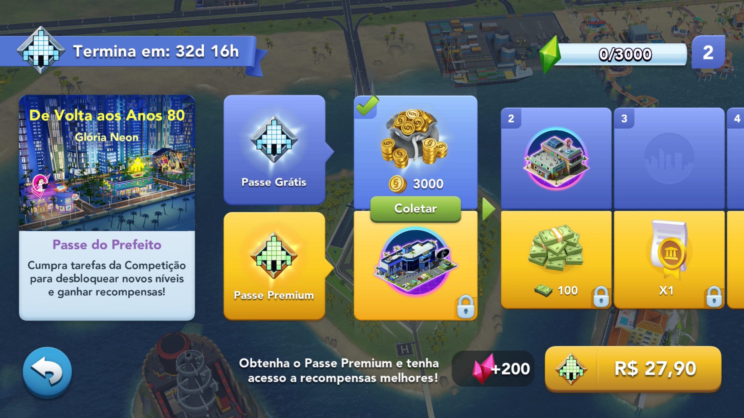 Ao total esse evento oferece 10 prêmios que variam desde Simoleons ao incrível “Parque da Eternidade” como prêmio máximo. Para coletar os prêmios da linha são necessários “Postos de Evento” que você pode coletar nas Tarefas da Sede de Competições, aprimorando edifícios e também fazendo compras!