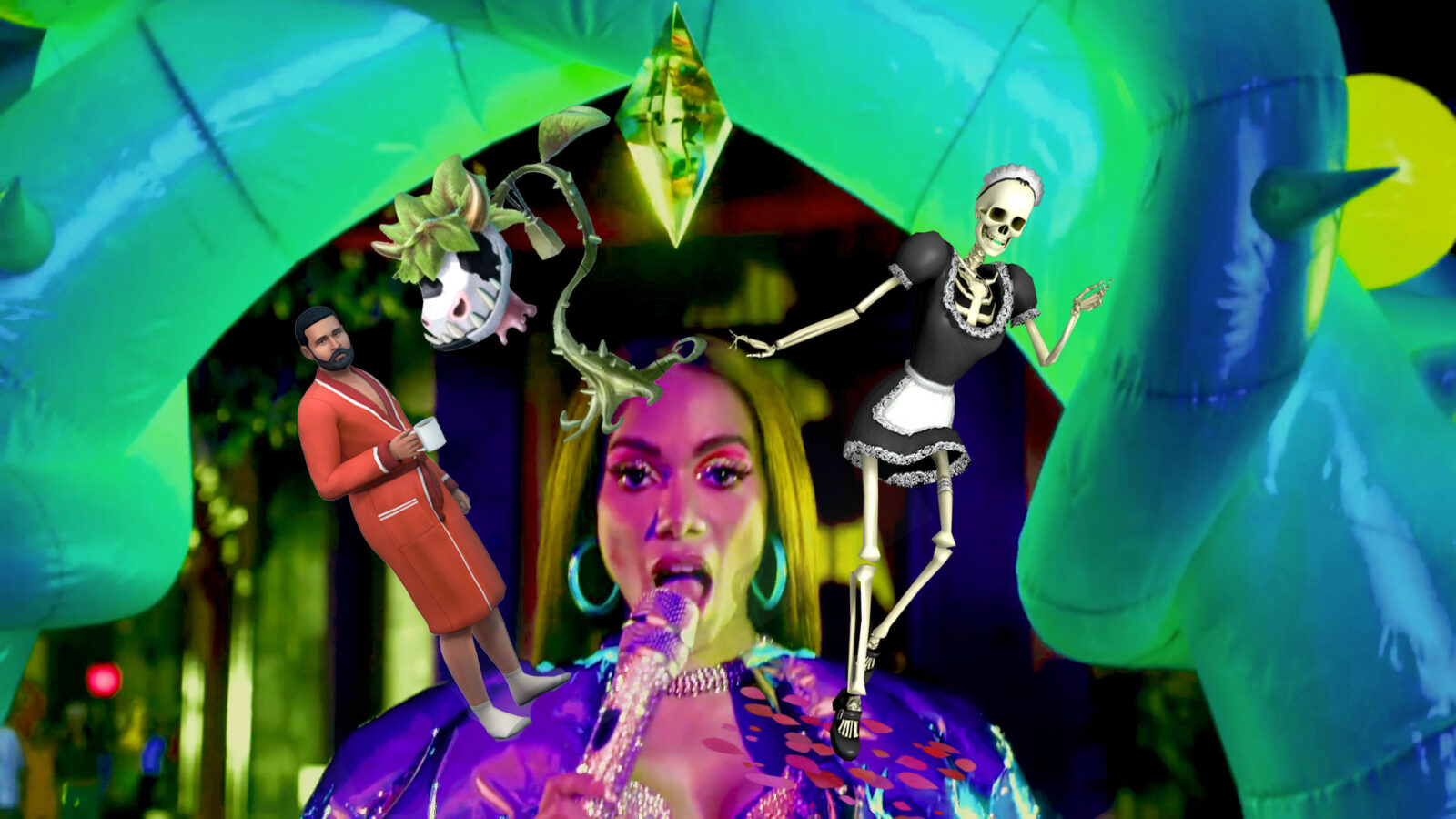 Eles existem desde o The Sims original, também em Gozando a Vida, e deram as caras em Aberto para Negócios (The Sims 2), Ambições e No Futuro (The Sims 3) e Vida Universitária (The Sims 4). Gente, no clipe da Anitta, ficou igualzinho a versão do The Sims 4! O da esquerda é o do clipe e, o da direita, o do jogo.